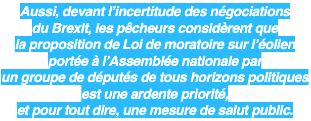 Par ailleurs, l’impact de l’éolien en mer sur la biodiversité, la ressource halieutique et les restrictions aux activités de pêches entrainées sont aujourd’hui incontestables.